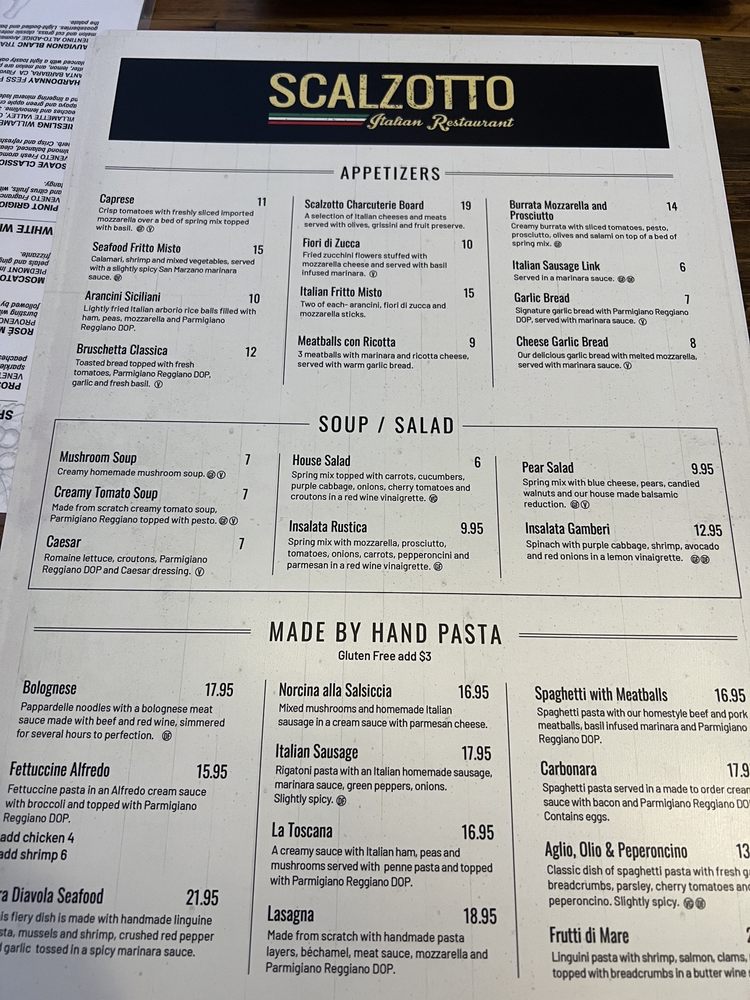 Scalzotto Italian Restaurant Menu (2025 Update)